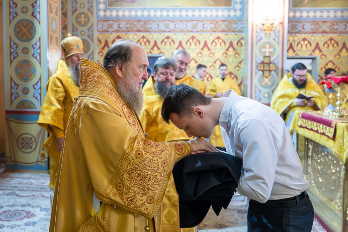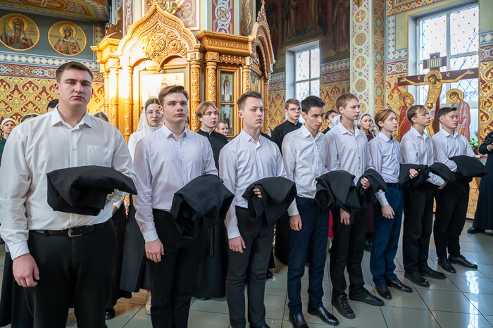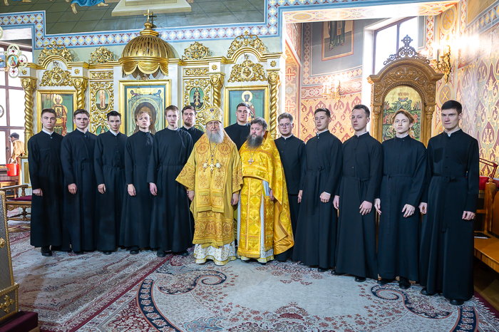 По окончании богослужения Глава Митрополичьего округа преподал благословение на ношение подрясника студентам подготовительного курса Алма-Атинской православной духовной семинарии.
