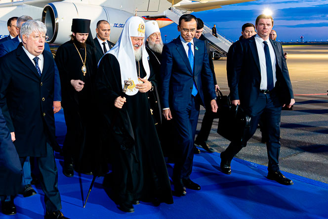 В ходе визита в Казахстан Предстоятеля Русской Православной Церкви сопровождают: митрополит Крутицкий и Коломенский Павел, руководитель Управления Московской Патриархии по делам епархий в странах ближнего зарубежья, Патриарший наместник Московской митрополии; личный секретарь Святейшего Патриарха Кирилла епископ Раменский Алексий; заместитель председателя Отдела внешних церковных связей архимандрит Филарет (Булеков), руководитель Патриаршей службы протокола протоиерей Андрей Бондаренко, председатель Синодального отдела по взаимоотношениям Церкви с обществом и СМИ В.Р. Легойда, заместитель руководителя Пресс-службы Патриарха Московского и всея Руси Н.И. Державин.