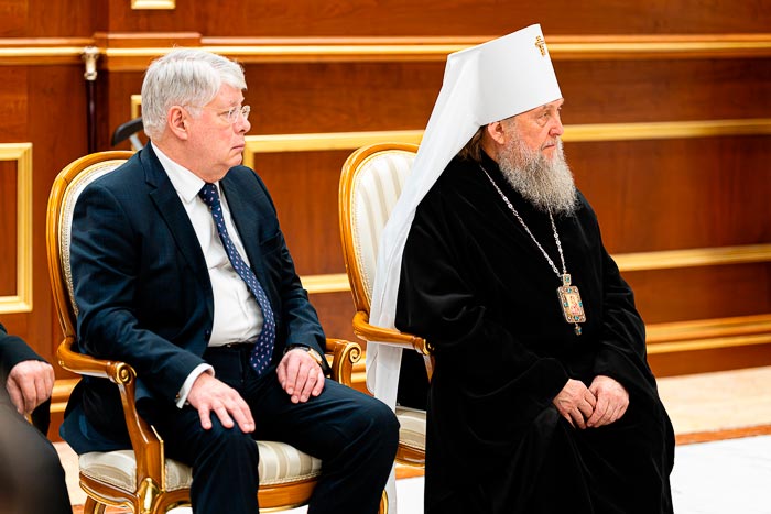 Также в числе встречавших были: министр культуры и информации Республики Казахстан А.Г. Балаева, Чрезвычайный и Полномочный посол РК в Российской Федерации Д.А. Абаев, Чрезвычайный и Полномочный посол Российской Федерации в РК А.Н. Бородавкин, аким (губернатор) столицы Ж.М. Касымбек, заместитель Председателя Сената Парламента РК Ж.К. Асанов, председатель комитета по международным отношениям, обороне и безопасности Сената Парламента РК А.И. Лукин, руководитель Аппарата Сената Парламента РК М.А. Споткай; со стороны Митрополичьего округа – благочинный приходов Астаны архимандрит Сергий (Карамышев), ректор Алма-Атинской православной духовной семинарии протоиерей Евгений Иванов, ключарь Константино-Еленинского собора Астаны протоиерей Сергий Калиев, руководитель административного секретариата Главы Митрополичьего округа иерей Георгий Сидоров, помощник митрополита И.Е. Яценко.